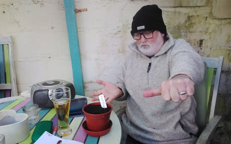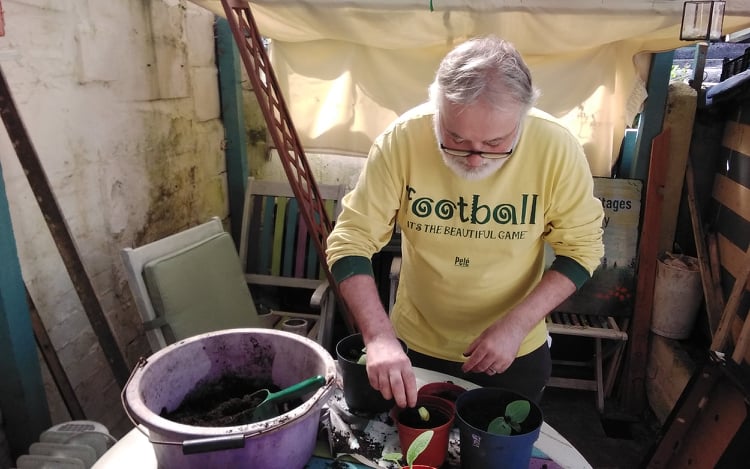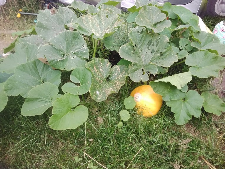 The hubby has never really shared my passion for allotment-growing. He does enjoy the results, ie: delicious edibles; random plant-part (leaf, stalk, flower, fruit or bulb) transformed into plate of food. But, the ‘before’ bit – mud and dirt, seeds and compost – It’s just not his thing. There is, however, nothing like a spot of ‘friendly’ competition to get a man going. Thus, when a friend earlier in the year suggested a pumpkin growing contest – played out in public via the wonders of Social Media – he was in. So began one man’s first attempt at growing-his-own …