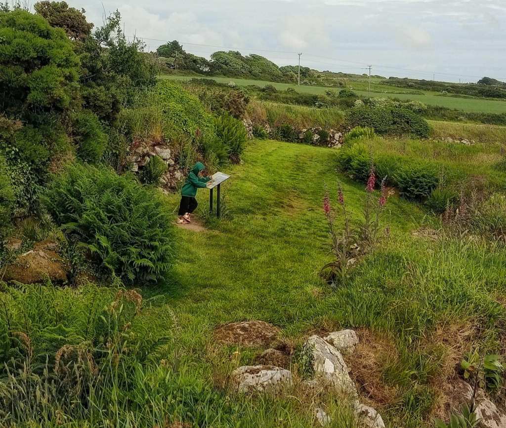 The answer, we decided, was purely practical: food preservation and storage. In particular, animal proteins such as meat and dairy products. It just seemed obvious to us that, like the natural caves of Cheddar Gorge in Somerset, the Cornish fogou – a deliberately constructed artificial cave – likely served a similar purpose, being ideally suited to the creation and preservation of overwinter supplies – especially cheese. For my twenty-first century small humans, this revelation sparked an impromptu reenactment of imagined Iron Age village life, consisting mainly of chasing each other around shouting: ‘You stole my cheese!’ A friend visited a week or so later with similar-age children whose thoughts also turned to food but with a more modern slant: utilising the ruined chapel’s square window frame for a game of ‘MacDonald’s Drive-Thru’ …