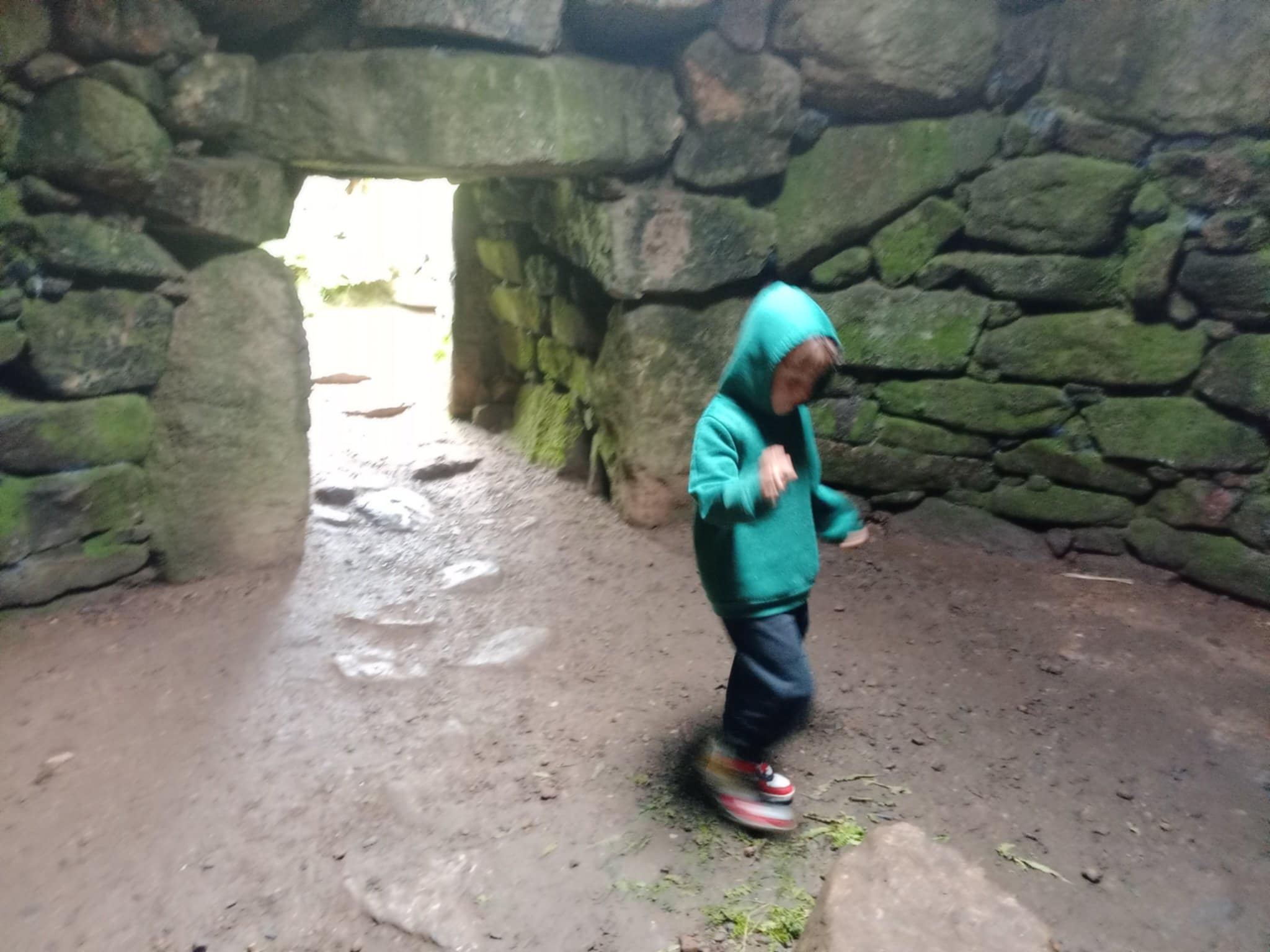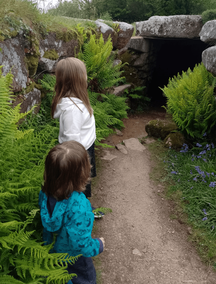 Recently, we returned to Carn Euny, almost two years exactly since that previous visit. Two years is a long time for a young child, and Alf (fast approaching 6) could not remember the previous venture, but listened intrigued to Grandma’s description of the strange cave and spooky tunnel, the long-ago people who lived there, and big sister Emi’s recall of the ‘You stole my cheese’ game, which he misheard as ‘Who stole my cheese’ and took to be the actual name of the place. Thus, we enjoyed another afternoon exploring the Iron Age Village that will now forever be known to us, not as Carn Euny, but as ‘Who Stole My Cheese’.