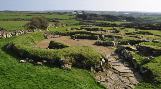 Central to the site is a stone-lined underground passage known as a fogou (Cornish meaning ‘cave’) and enigmatic circular chamber. Such structures are unique to west Cornwall, and their exact purpose is unknown, with theories ranging from defense and storage to mysterious ‘ritual use’. Nearby field boundaries suggest that the people who lived here farmed the surrounding land, growing oats, barley and rye and keeping animals such as sheep, goats and cattle. They were perhaps active as traders, and likely played their part in Cornwall’s early tin industry. There is much to explore here.