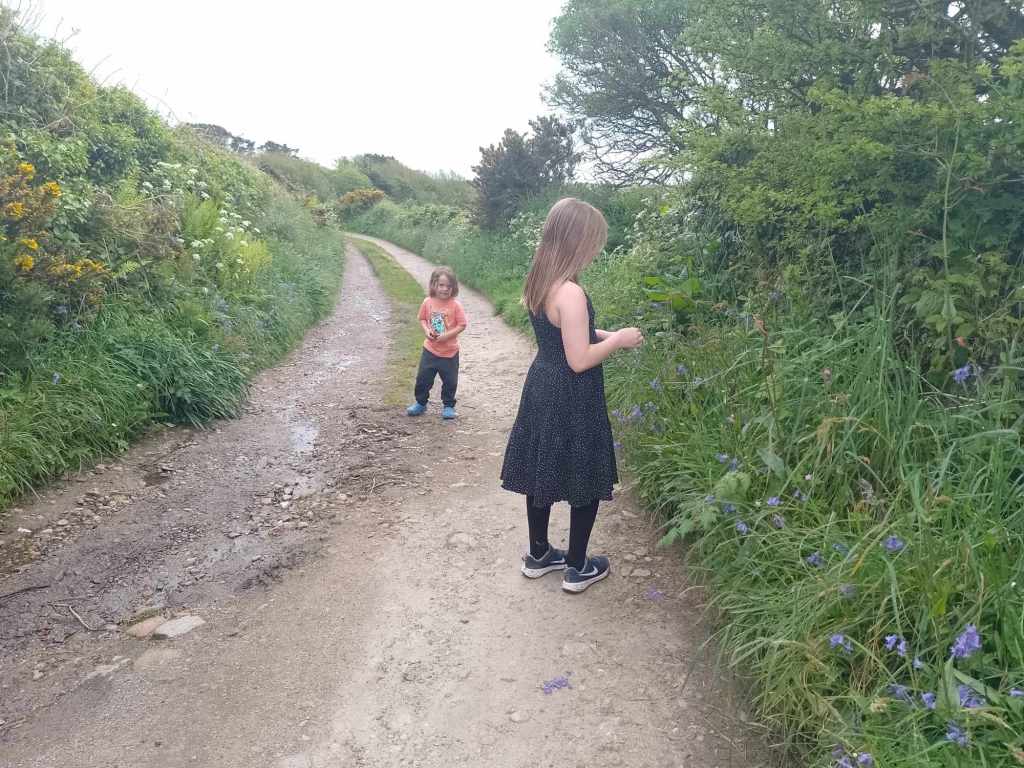 I first visited Carn Euny back in 2001, and recall little of it other than the slightly surreal experience of venturing into the tunnel and fogou on a mizzley autumn afternoon, grey clouds in the sky, lichens glowing on the walls, and the ghosts of those ancient farmers-turned-tin-miners, long gone but ever-present. More than two decades later I returned, in May 2023, now with grandchildren Emi (then 10) and Alfie (nearly 4). This time, the sun shone in a clear blue sky and the wildflowers waved in a gentle breeze, as we pondered the big questions of Iron Age human life: What clothes and shoes did they wear? What jobs did they do? What furniture did they have? Where did they sleep? Did they bathe or shower?? What language did they speak? What did they eat and drink? And – of course – what was the purpose of that fogou and chamber?