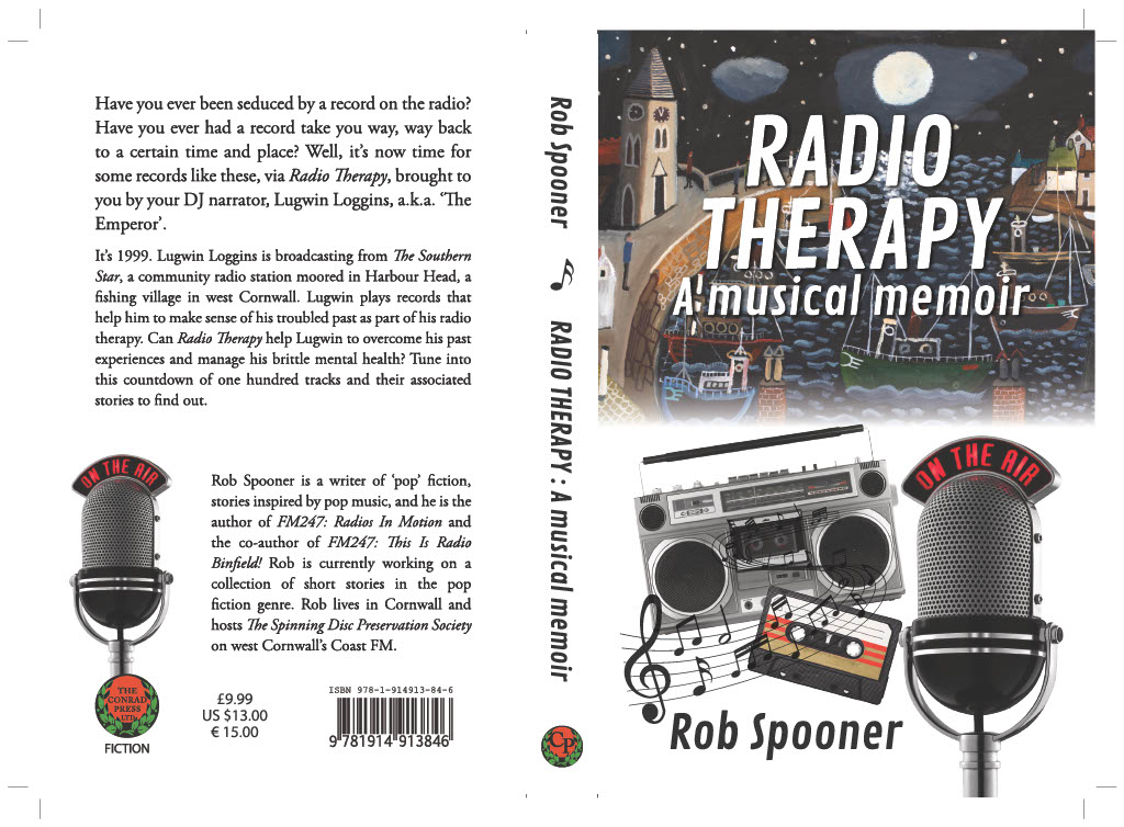 “The first thing that strikes you about Radio Therapy by Rob Spooner is how much love the author has for pop music and the radio shows that introduced us to the hits. The radio personalities, stations and main characters of this memoir all have pseudonyms – but these are mostly easy to discern and the narrative flows beautifully. The arrangement, or design, of the story is similarly indebted to the top 30 rundown shows of the era – we’re talking mostly 1970s in terms of musical references, but the memoir covers a larger time-scale than that decade alone – so we build towards the climax in much the same way as the ‘countdown’ of the charts heads inevitably towards the #1 record. There is also a strong feeling of place throughout this memoir as we travel between the extreme South West and South East of the country (UK). The protagonist, the delightfully named Lugwin Loggins, attempts to make sense of the issues and events that connect him to both regions whilst drafting letters to characters from his past. These are accompanied by references to pop and rock tunes which have resonances with the writer, the recipient, or both. As we follow the (mis)adventures of Lugwin and the other personalities in Radio Therapy we are taken on a ride that is at times personal, touching and comic – all within a framework that is constructed appropriately and concisely. Now this reader is very-much looking forward to the follow-up, FM247, Radios in Motion.” – Richard Crowe, 01.8.22.